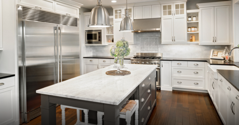 Hardwood -- Hardwood is a classic choice that works with any architectural style and can last for more than a century with the right care. Maintenance is a cinch and repairs are simple enough when normal wear occurs or pets leave their mark. That said, keep in mind that wooden floors can be cold and loud if they're not accessorized with rugs.